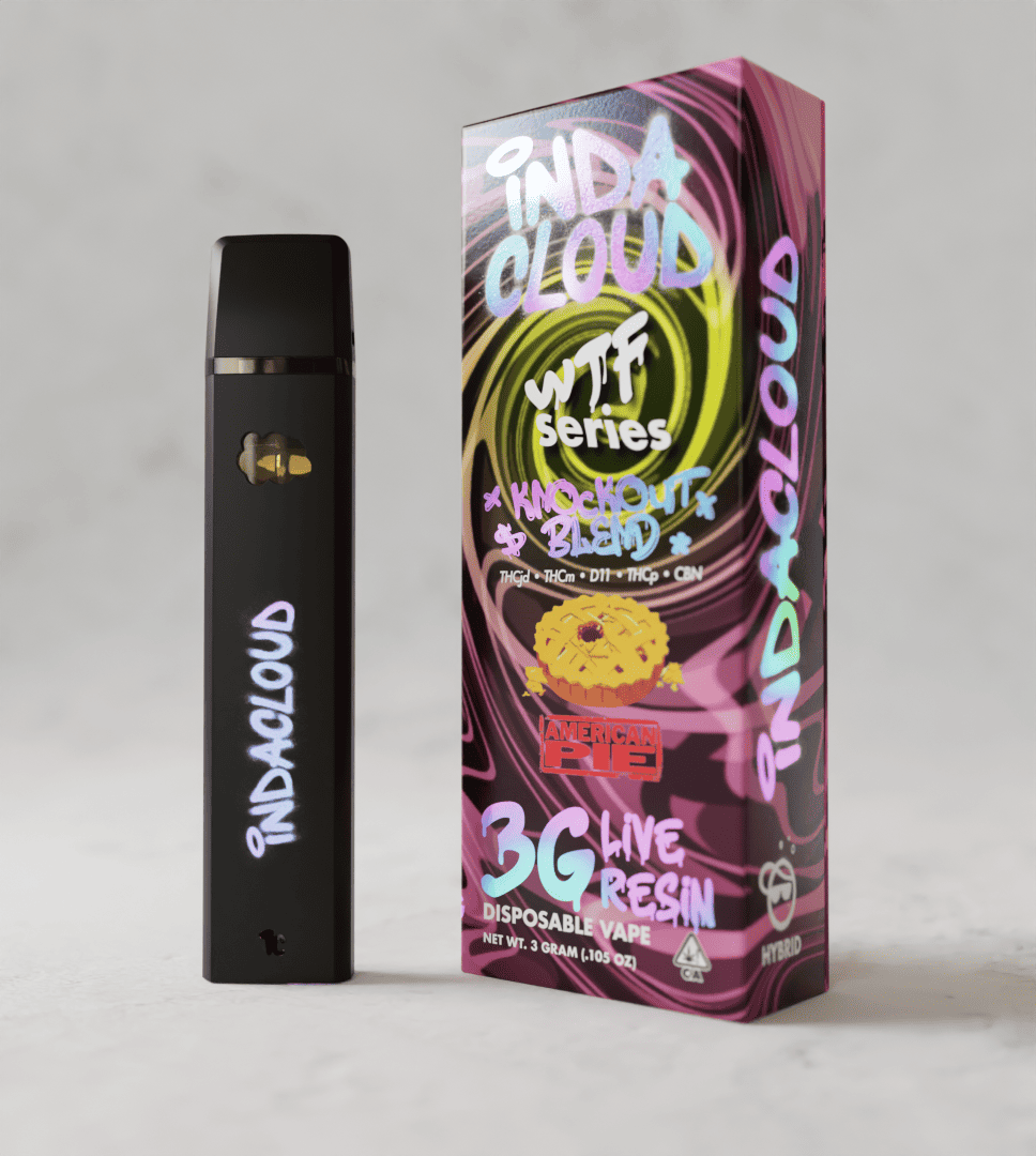 The effects of using the American Pie WTF Series vape are designed to be as engaging and dynamic as the product's name suggests. This hybrid vape is engineered for daytime and nighttime use, providing a balanced journey that offers relaxation and invigoration. Its distinct Knockout Blend of cannabinoids produces a potent sensation that will leave users pleasantly relaxed and refreshingly uplifted. This combination is a testament to Indacloud's meticulous product development, delivering a product that achieves harmony between relaxation and invigoration.