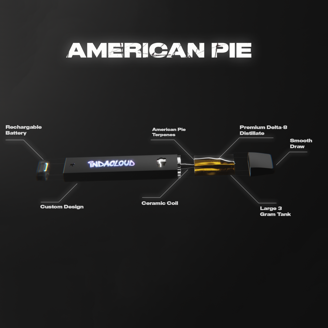 The American Pie WTF Series vape is part of Indacloud's WTF series because it shares the defining characteristics of this boundary-pushing line. With a memorable name that matches its unforgettable flavor and effects, the large 3-gram format, and the potent mix of rare cannabinoids in the Knockout Blend, this vape is in perfect alignment with the WTF Series' mission of delivering vaping experiences that are bold, exciting, and supremely satisfying.
