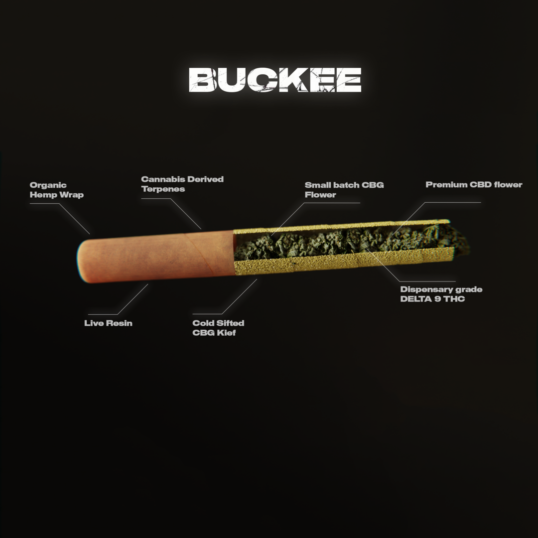 The Buckee Delta 9-O THC Super Blunt is a Sativa-forward smokable designed to lift you and keep you engaged. You can expect a potent and uplifting experience that can stimulate your senses and enhance your mood upon consumption. The blend of AAAA Premium CBD flower, Small Batch CBG Flower, Dispensary Grade Delta 9 THC + THC-O Distillate, Cold Sifted CBG Kief, and Live Resin combine to provide a balanced and enjoyable high. It's important to note that the effects can be quite strong, especially for those with lower tolerance levels. As such, starting with a few puffs and waiting to feel the effects before consuming more is recommended.