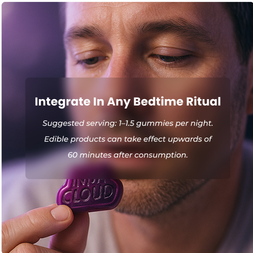 Indacloud edible products can take effect upwards of 60 minutes after consumption, but keep in mind the effects last longer than other forms of cannabis-infused products. The higher the dosage the quicker it typically takes to kick in. If you’re new to edibles please start with a dose no larger than 25mg or about ¼-½ of one Indacloud gummy.