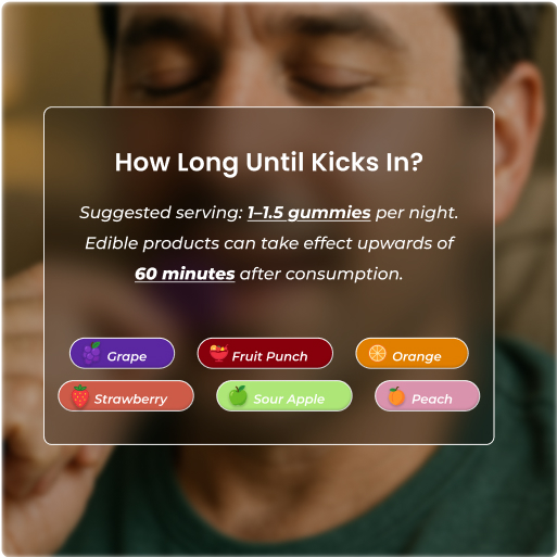 Indacloud edible products can take effect upwards of 60 minutes after consumption, but keep in mind the effects last longer than other forms of cannabis-infused products. The higher the dosage the quicker it typically takes to kick in. If you’re new to edibles please start with a dose no larger than 25mg or about ¼-½ of one Indacloud gummy.