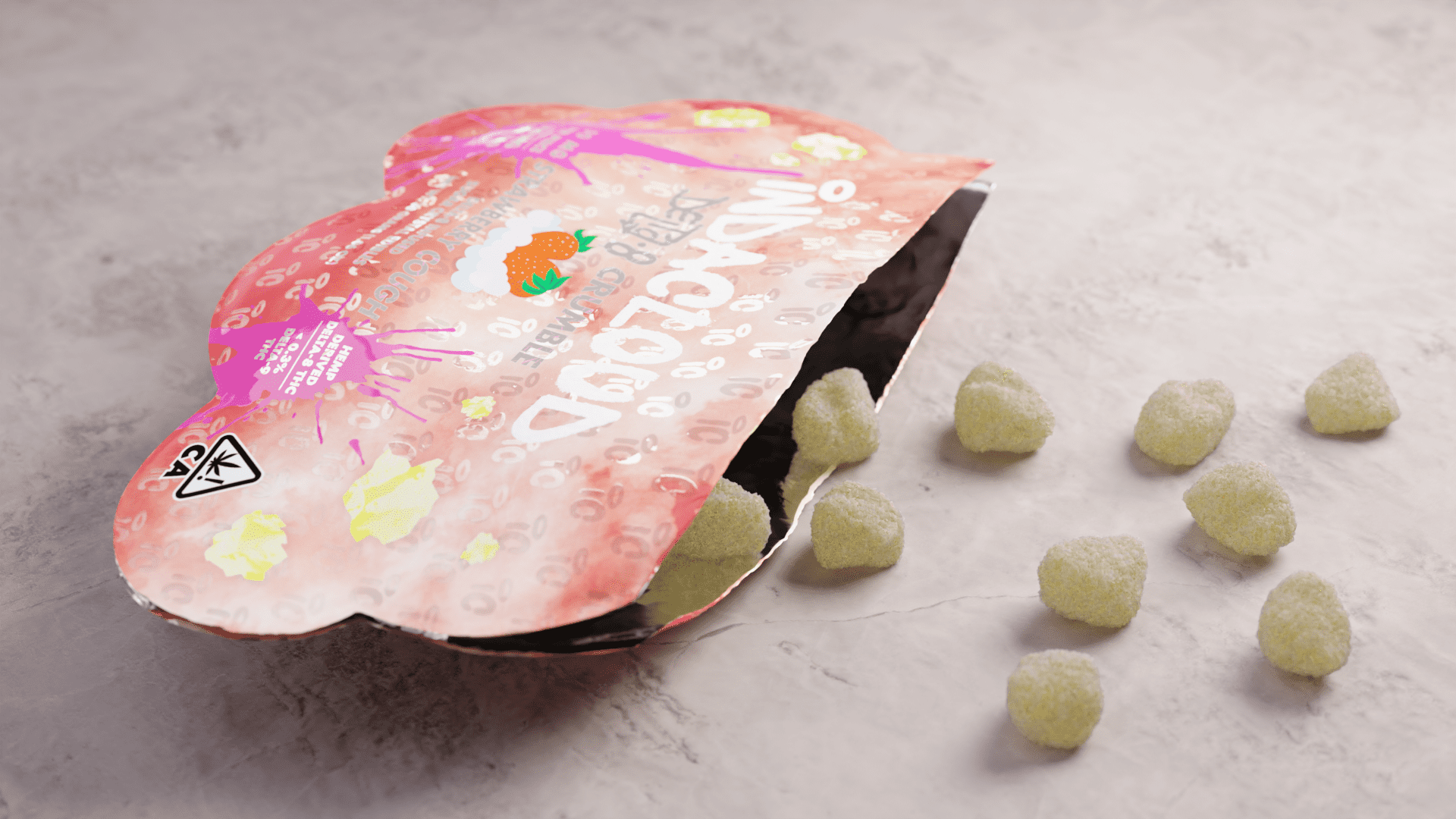 Strawberry flavored hard crumbled candy, don’t worry they won’t actually make you cough. A truly unique edible that may be small in size but not strength. Enjoy the bite sized bits of delicious summer strawberry flavoring with smooth notes of cream to wrap it up in the perfect bite.