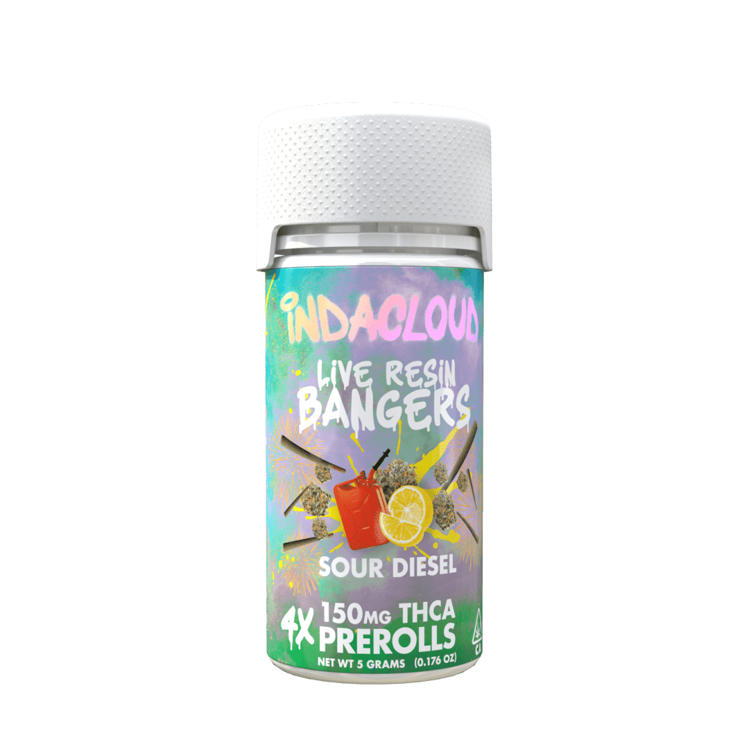 Prepare to be blown away with our latest and greatest pre-roll creation. These Live Resin Bangers are pure THCa Sour Diesel joints. This insanely popular strain known for its energizing and fast-acting Sativa effects is amplified to the next level in these absolute Bangers. Each pack contains 4 pre-roll bangers weighing over 1.25 grams each! Other than experiencing explosive effects, you can expect the flavor of a pure quality diesel flower with a lemony haze scent to back it up.