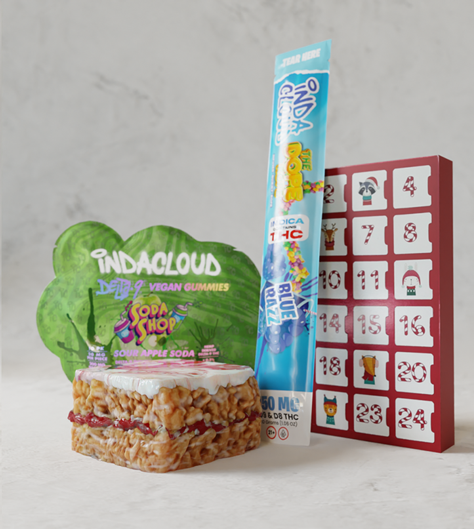 This just in, you’ve been naughty this year. As a result, Santa has decided to punish you with a relaxing total of 1,250 mg of THC. Everyone on the naughty list gets an indica gift of our Chocolate Truffle Advent Calendar, Sour Apple Soda Shop Gummies, a Blue Razz Dope Rope, and our White Chocolate Peppermint Cereal Treat.